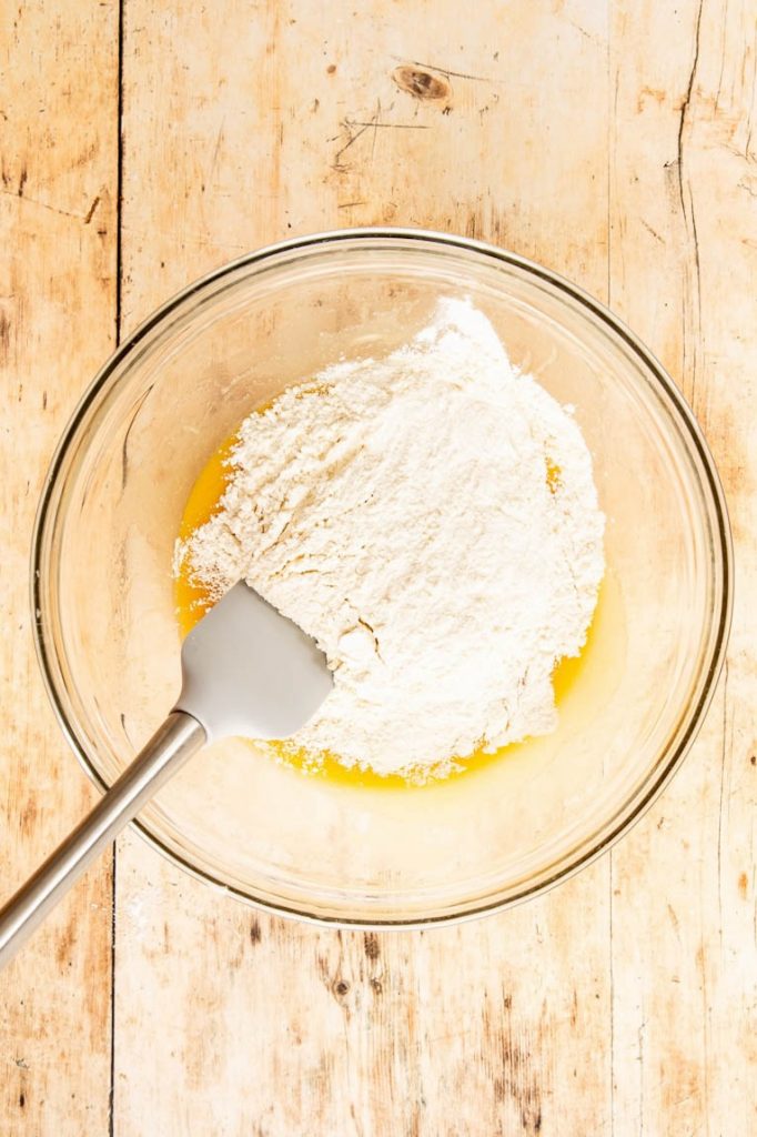 - Add the dry ingredients to the liquid ingredients and fold until a dough forms.