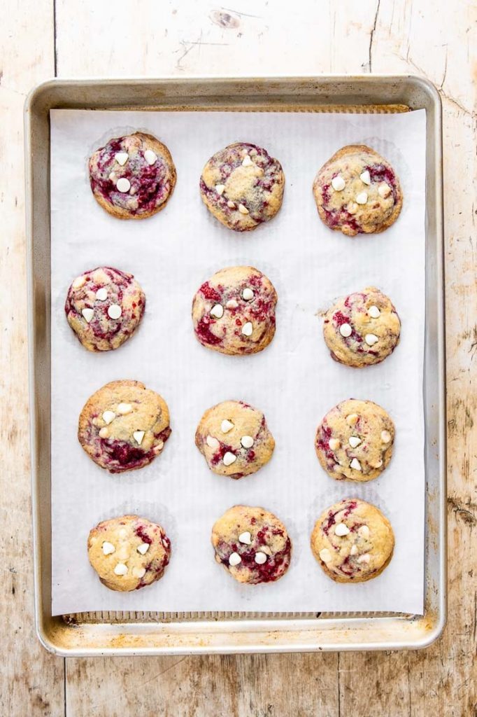 - Let the cookies cool on the pan. Raspberry cookies are delicate when warm. Allow them to cool completely on the baking sheet so they can finish setting and hold their shape before moving or storing.